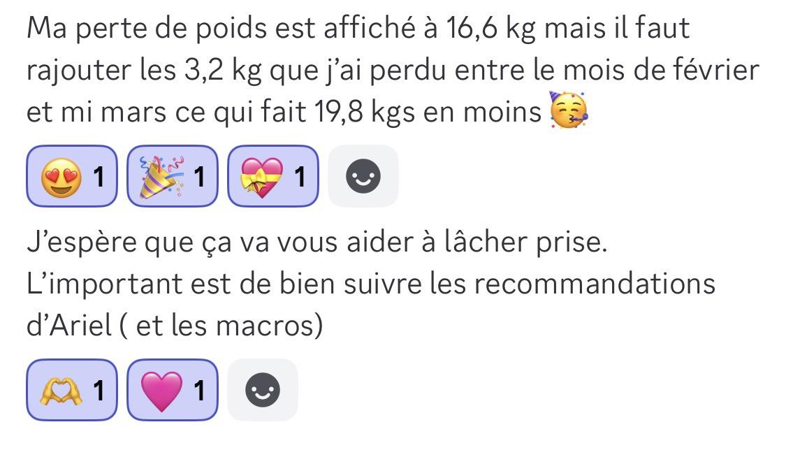 J’ai enfin passé le cap des -15kg, sans frustration, juste avec de la constance, de la patience, et surtout en respectant mon rythme. Je te remercie ma belle @Ariel 🩷 pour tous tes précieux conseils. À tous ceux et celles qui doutent : c’est possible.