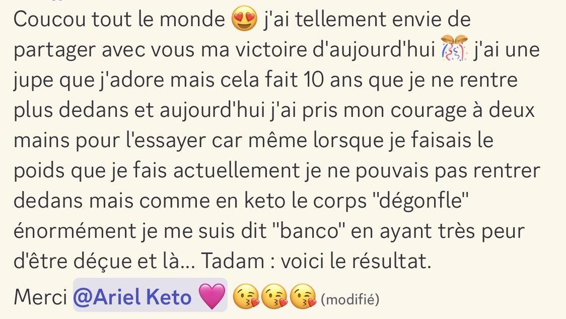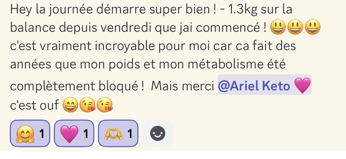 Je ne me sens plus au régime depuis et que j'ai commencé le keto métabolique d'Ariel ❤️ Je n'ai plus de crise de boulimie, je mange vraiment comme j'aime, et ce matin j'affiche un -8.2kgs, I'm very happy