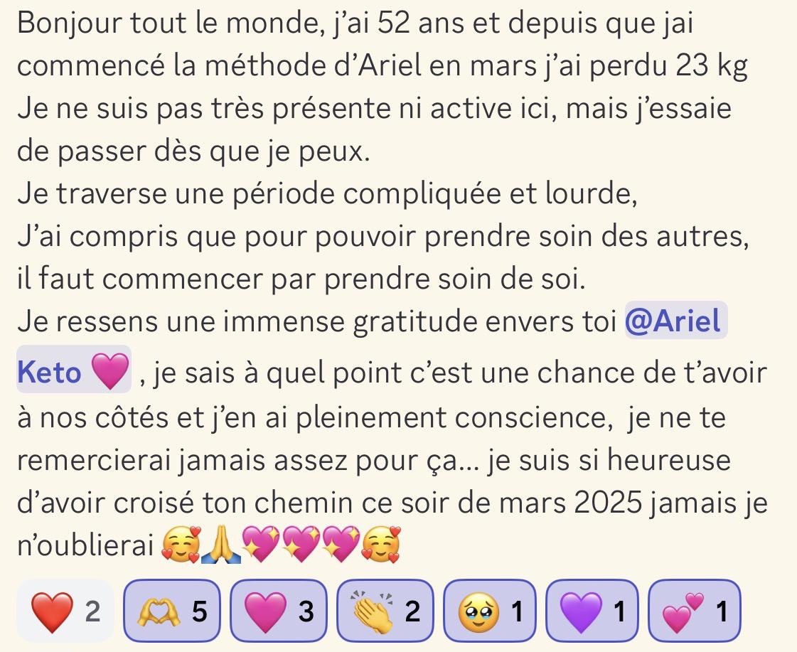 J'ai perdu 30 kilos grâce à notre merveilleuse @Ariel🩷 j'ai cette sensation parfois d'être dans un autre corps 😁 C'est tellement motivant et ma santé est tellement meilleure 🎊 Merci Ariel 🩷 😘😘😘
