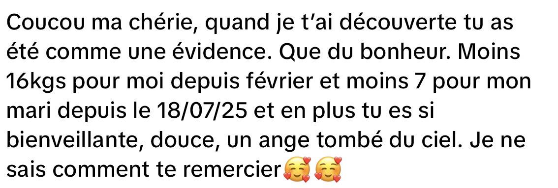 Ma méthode n’est pas un substitut aux traitements médicaux mais une pratique complémentaire qui peut apporter des améliorations significatives dans la gestion du bien-être général. Les contre-indications de cette diète sont consultables sur cette page en cliquant ici. Tout ce que je partage sur ce site est accessible gratuitement, afin que chacun·e puisse s'informer et explorer cette voie. Ci-dessous, quelques uns de vos 700 témoignages depuis Février 2025, je vous love 🥹💛🫶