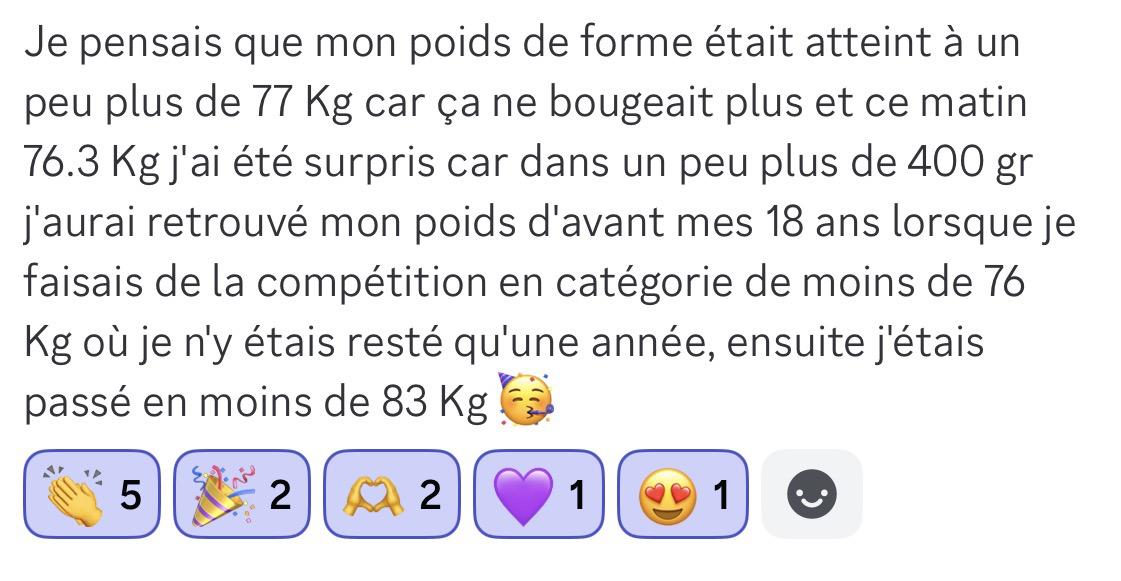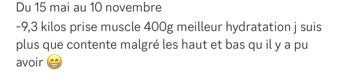 J’étais au départ à 93kg. J’étais en stagnation alors j’ai pris un rdv avec Ariel pour ajuster 2/3 petites choses et je t’en remercie d’ailleurs. Et ça rebouge 🙏🏻 ce matin je suis à 86,700kg soit 6,3kg d’envolés 💪🏻💪🏻💪🏻