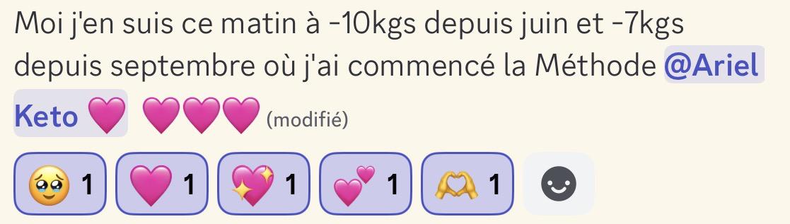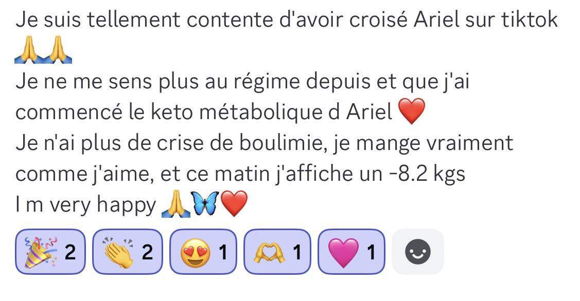 Je ne me sens plus au régime depuis et que j'ai commencé le keto métabolique d'Ariel ❤️ Je n'ai plus de crise de boulimie, je mange vraiment comme j'aime, et ce matin j'affiche un -8.2kgs, I'm very happy