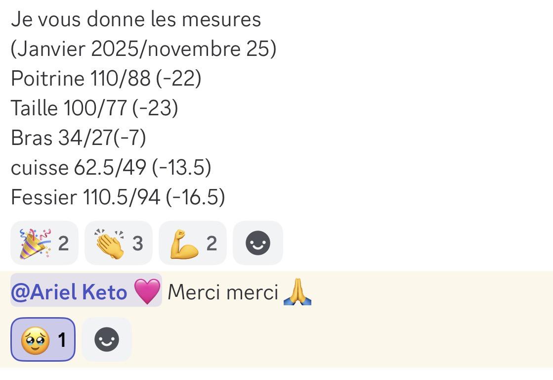 J’ai enfin passé le cap des -15kg, sans frustration, juste avec de la constance, de la patience, et surtout en respectant mon rythme. Je te remercie ma belle @Ariel 🩷 pour tous tes précieux conseils. À tous ceux et celles qui doutent : c’est possible.