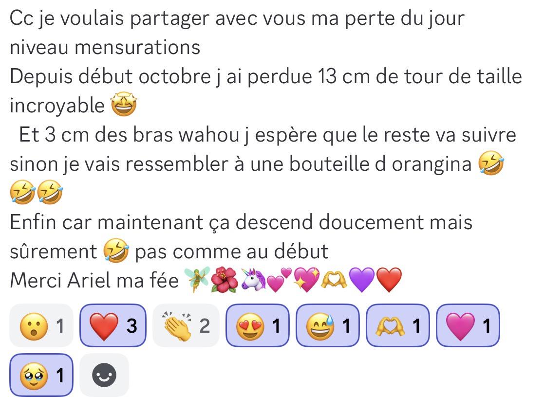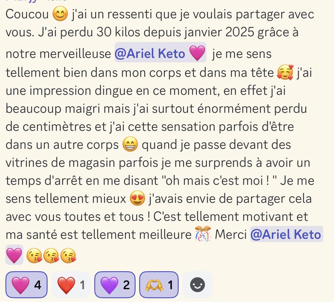 J'ai perdu 30 kilos grâce à notre merveilleuse @Ariel🩷 j'ai cette sensation parfois d'être dans un autre corps 😁 C'est tellement motivant et ma santé est tellement meilleure 🎊 Merci Ariel 🩷 😘😘😘