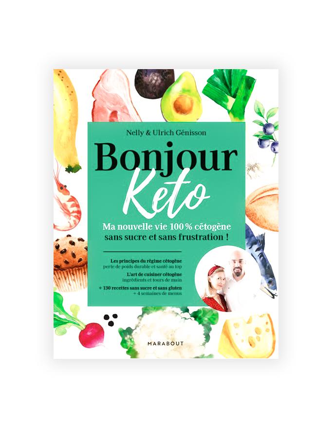 ✅ Le fameux livre Bonjour Keto, la Bible du Cétogène m’a apporté des bases solides et des repères quand j’avais des doutes, besoin d'idées de plats ou de desserts conviviaux. Il représente un incontournable du mode de vie cétogène et je salue le travail acharné de ses auteurs, personnes inspirantes et pour qui je nourris beaucoup d'admiration, autant que de gratitude. Les recettes comportent les macros ce qui est largement un + quand on commence, après, je ne valide pas l'utilisation récurrente de la poudre d'amandes, du moins pas quotidiennement. Lorsqu'elle est inférieure ou égale à 20g, je la remplace par de la farine de coco !